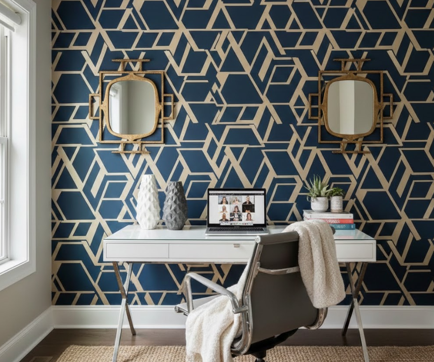 - Wallpaper: Bold patterns or textured designs.